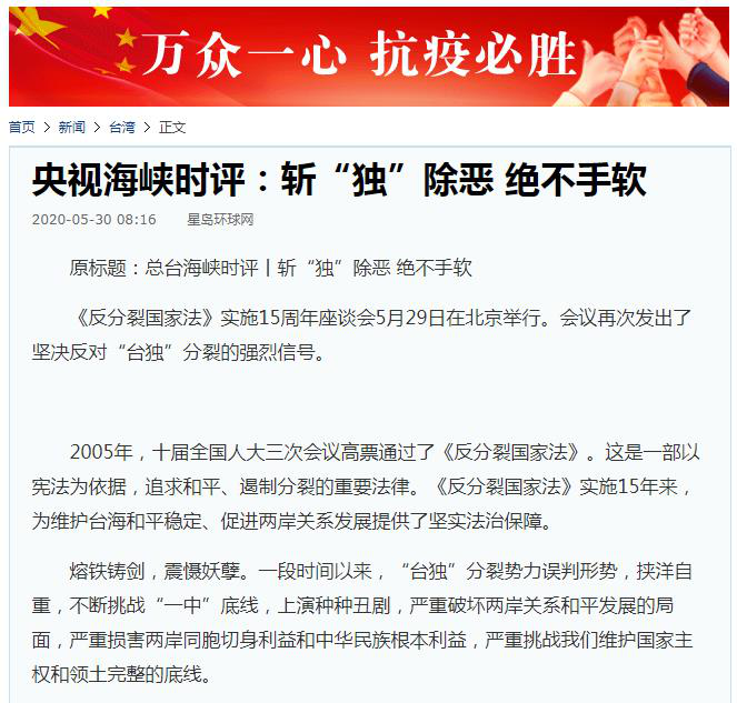总台海峡时评聚焦《反分裂国家法》实施15周年 抨击“台独”分裂势力引发海内外媒体广泛关注