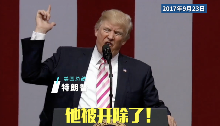 对此,白宫在2017年的回复相当硬核。2017年9月23日,在阿拉巴马州一场活动上,特朗普说,他要告诉NFL的老板,应该让所有单膝跪地的人离开球场。他向支持者激动地说出了当年在电视节目《学徒》中的名言:“他被开除了!”