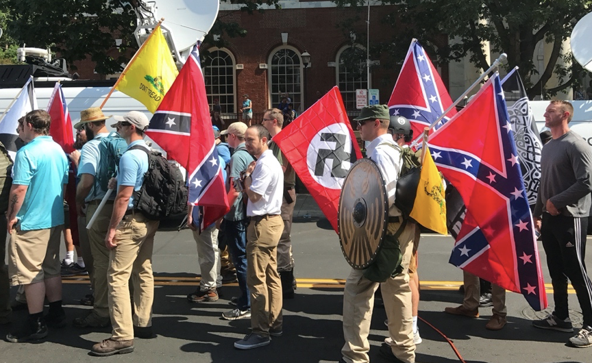 2017年8月12日,来自美国多地的白人至上主义者、新纳粹分子等在弗吉尼亚州夏洛茨维尔市举行“联合右翼”集会,抗议当地政府移除一座邦联时期纪念雕像的决定,并与抗议他们的人群发生冲突。集会被警方驱散后,一名白人至上主义者驾车冲撞抗议者导致1人身亡19人受伤。
