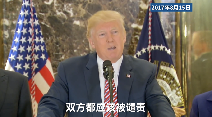 特朗普说,“当时有两方人,一方是左派的。他们暴力地袭击了右翼的游行人群。而媒体对右派团体的报道非常不公平,双方都应该被谴责。”