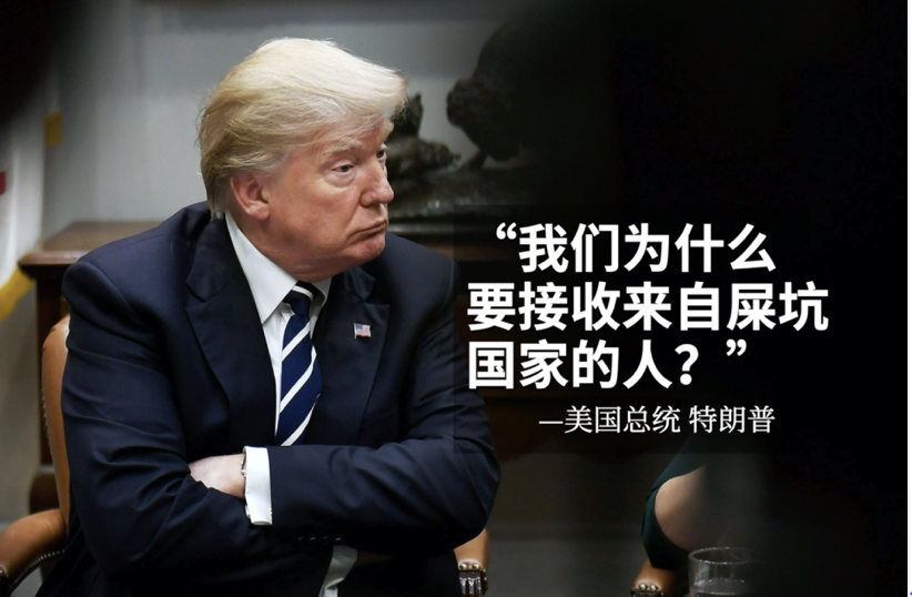 据《华盛顿邮报》报道,2018年1月11日,白宫在一场移民政策会议上,总统特朗普在提到海地、萨尔瓦多和部分非洲国家的移民时,竟然说“我们为什么接收来自屎坑国家(shithole countries)的人?