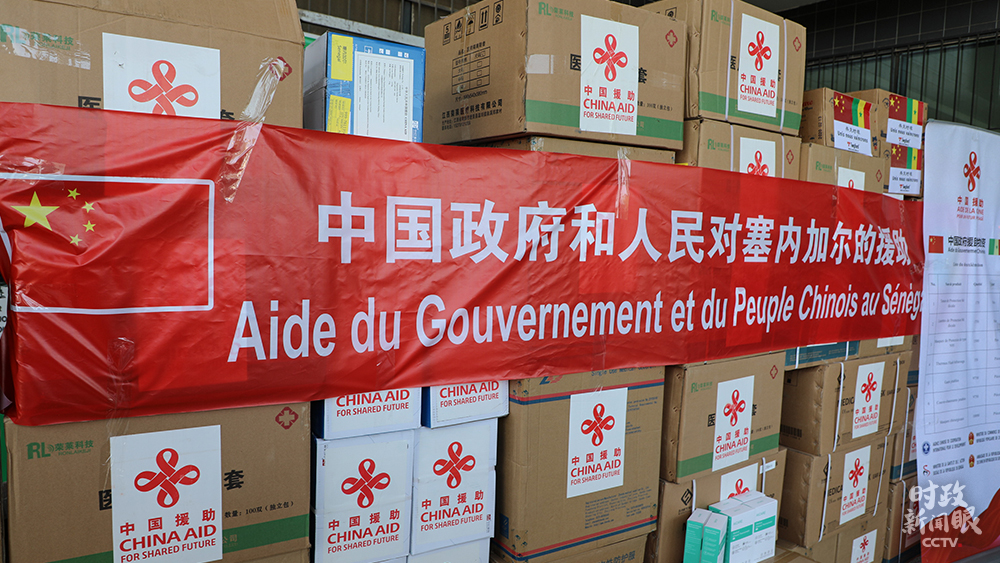 △4月22日,塞内加尔举行中国援塞抗击新冠肺炎疫情物资交接仪式。这批抗疫物资分别由中国政府、两家在塞中资企业捐赠。(总台央视记者韩蓄提供)