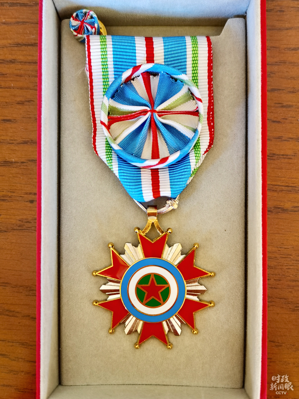 △5月10日,吉布提共和国总理卡米勒向中国赴吉布提抗疫医疗专家组授勋。曾勇组长被授予“军官级独立日勋章”。(总台央视记者马培敏提供)