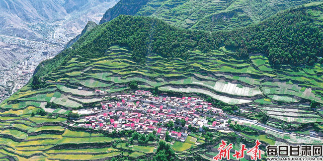 江盘镇马土山村鸟瞰。摄影:新甘肃·每日甘肃网记者 韦德占