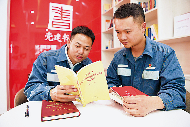 当前,理论武装工作的首要任务就是坚持用习近平新时代中国特色社会主义思想武装全党。图为南方电网公司贵州凯里供电局精心打造基层党支部党建书屋,该公司党员在党建书屋学习习近平新时代中国特色社会主义思想。 人民图片 蔡兴文/摄