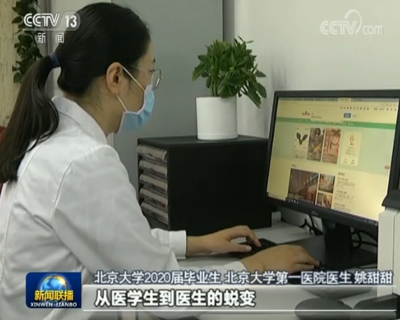 在北京大学医学部2020届毕业生这场特殊毕业典礼上,同学们身着白衣,重温医学生誓言。博士毕业生姚甜甜就是其中的一员,目前她已经加入到北京大学第一医院抗疫先锋队中,在感染科门诊参与核酸检测、在线解答新冠肺炎疫情困惑。