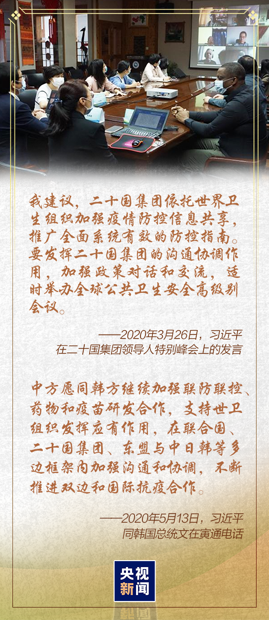 与各方分享交流抗疫经验、倡导团结合作提振世界经济、推动构建人类卫生健康共同体……通过一场场“云外交”,习近平主席引领中国成为全球抗疫的重要力量、维护世界稳定发展的中流砥柱。