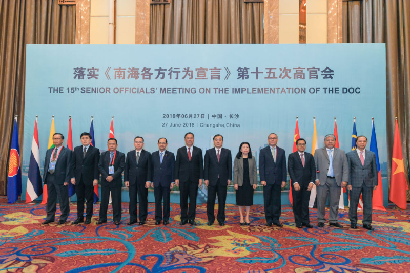 2018年6月25日至27日,中国与东盟国家11国在中国湖南省长沙市举行落实《南海各方行为宣言》第15次高官会和第24次联合工作组会。这是与会代表合影。新华社发(张笑宇摄)