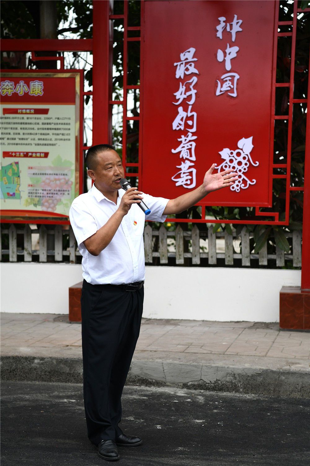 在四川省眉山市彭山区果园村,村党总支书记李永伟在介绍果园村葡萄产业发展情况(6月11日摄)。新华社记者 王曦 摄