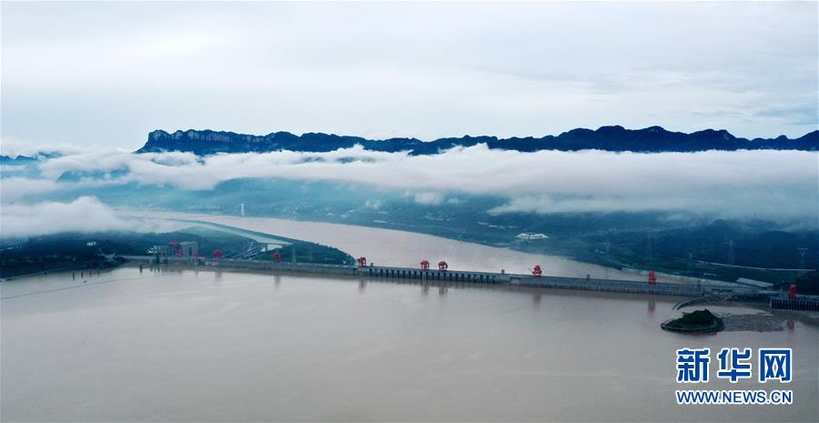 7月26日在湖北省宜昌市秭归县拍摄的三峡大坝(无人机照片)。 水利部长江水利委员会水文局26日14时发布消息说,“长江2020年第3号洪水”在长江上游形成,预计27日晚三峡水库最大入库流量在60000立方米/秒左右。 新华社发 王辉富 摄 图片来源:新华网