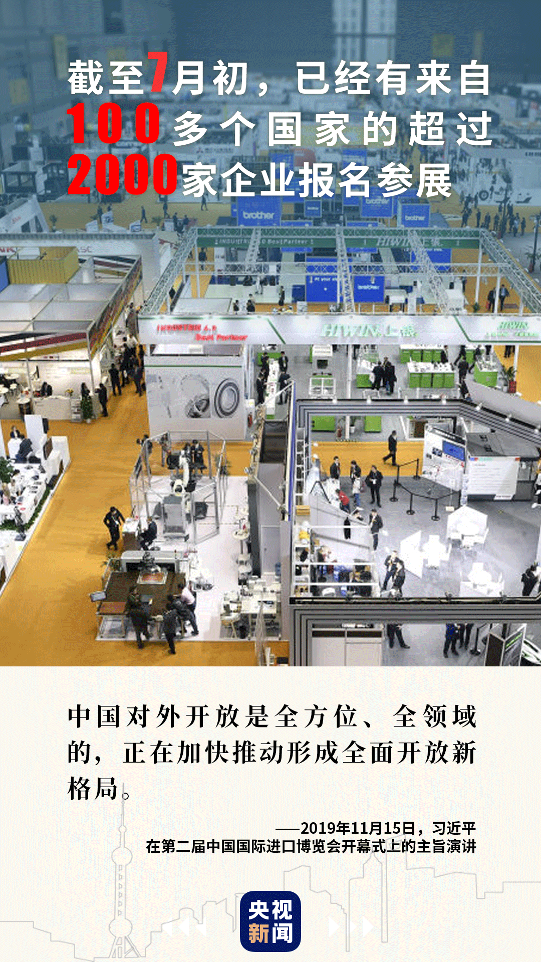 第三届进博会将于2020年11月5日至10日在上海举行。7月27日,进博会倒计时100天。