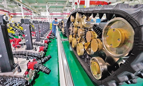 7月17日,工人在唐山国家高新技术产业开发区中信重工开诚智能装备有限公司内调试特种机器人。目前,唐山高新技术产业开发区拥有机器人及其相关企业62家。 牟 宇摄(新华社发)