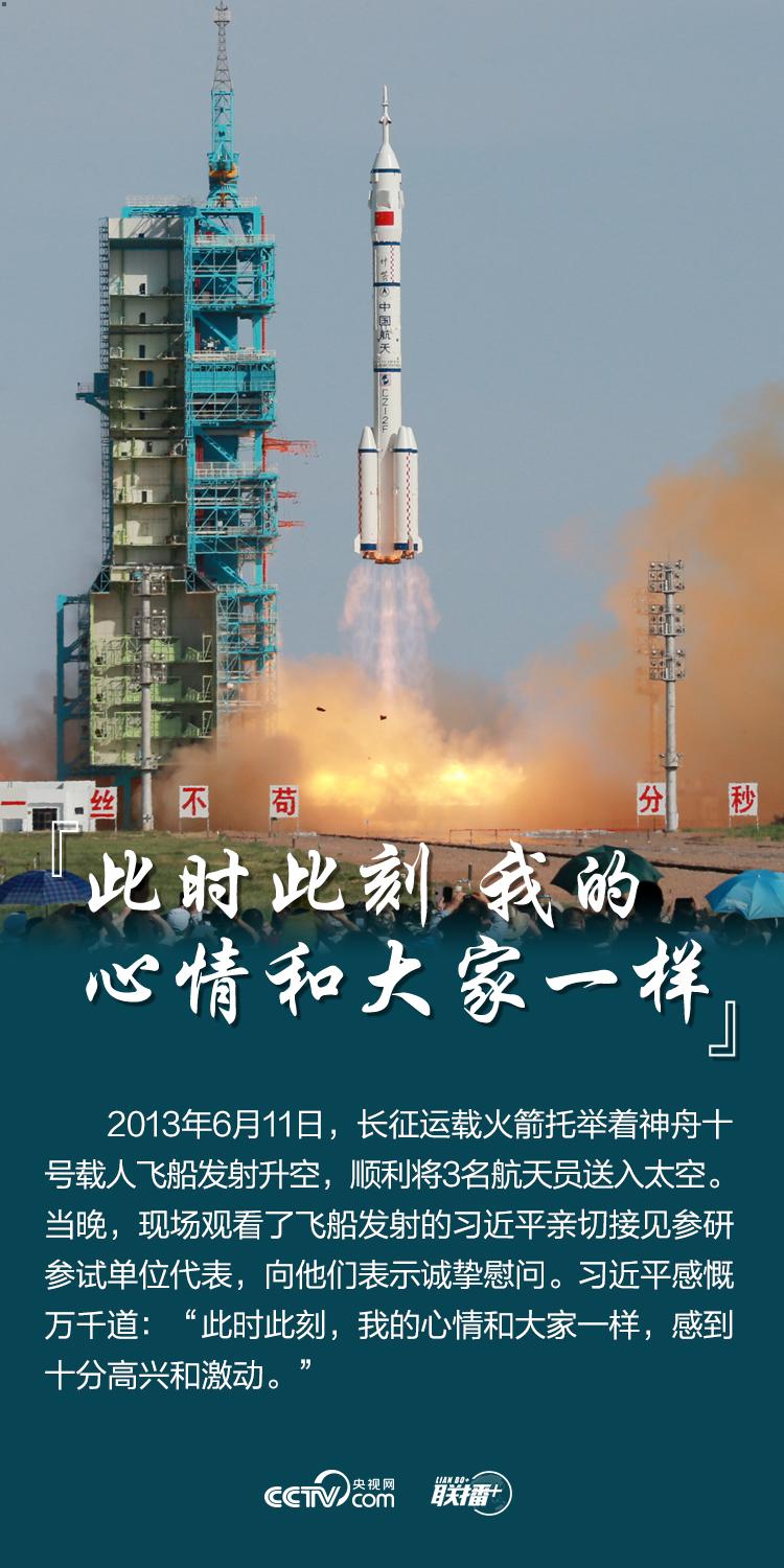 从现场观看飞船发射,到与执行任务的航天员“天地通话”,再到给老科学家回信……习近平总书记始终密切关注我国航天事业发展。在我国航天事业迎来又一个重要里程碑之际,央视网《联播+》与您一起了解总书记航天情缘中的六个高光时刻,共同感受中国航天的飞跃。