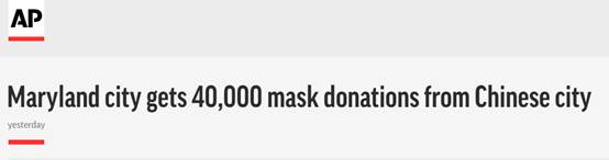 中国援助美医疗口罩抵达马里兰州 美媒:雪中送炭的礼物