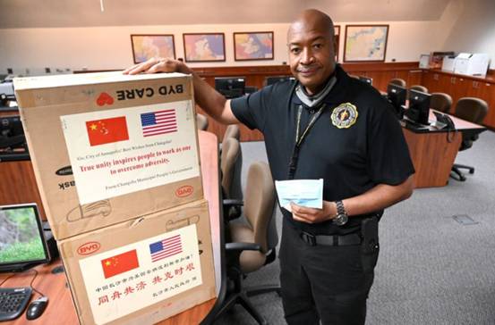 安纳波利斯市市政执行官戴维·贾雷尔在11日的新闻发布会上表示,来自中国长沙的捐赠最早从4月份开始,当时马里兰州正处于新冠疫情暴发初期,公共卫生工作人员对医用口罩的需求量非常大。