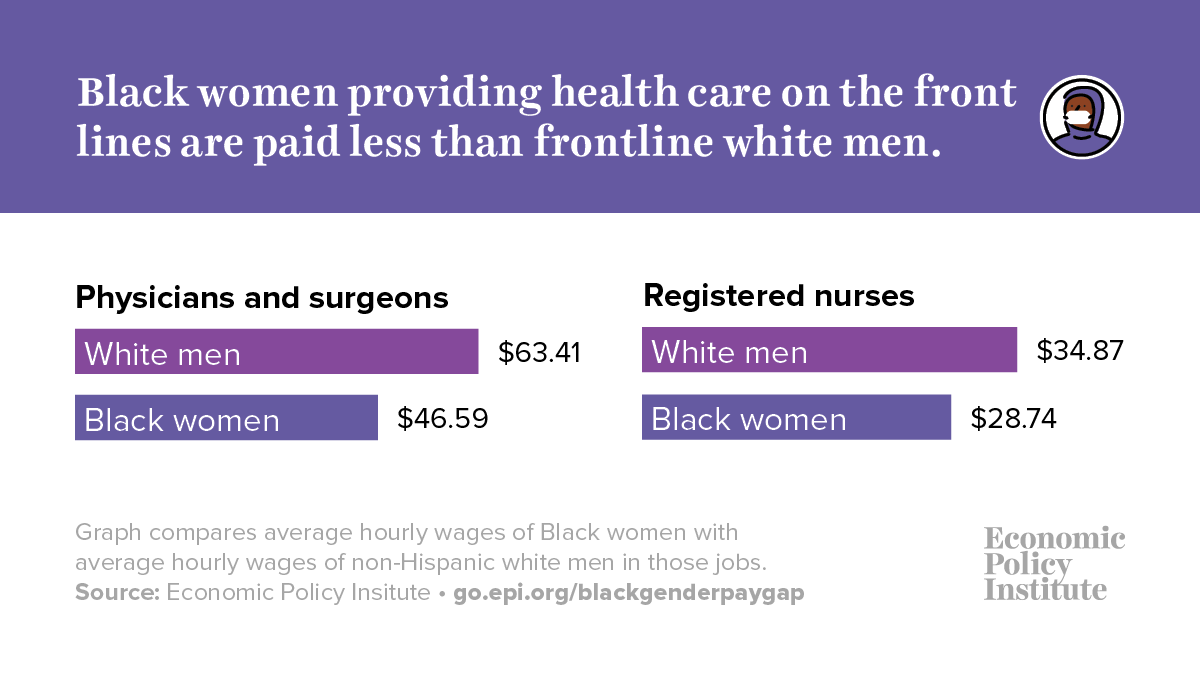 △身处抗疫一线的非洲裔女性医生和护士,获得的时薪少于白人男性 图片来源:经济政策研究所