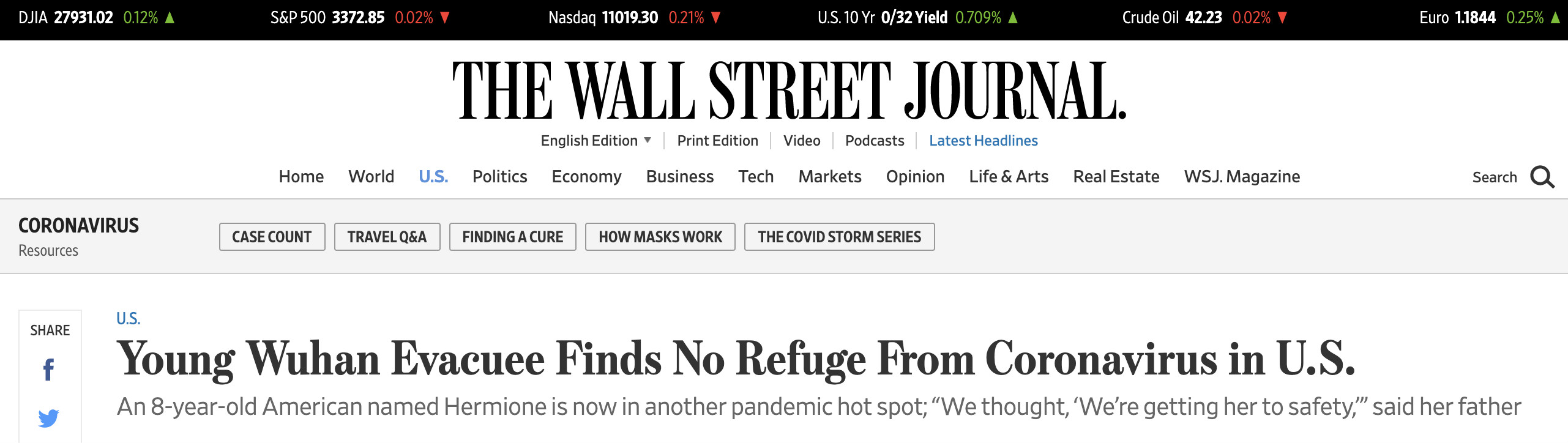 《华尔街日报》报道称,赫敏出生于中国,当时,她的父母在中国任教,她在中国度过了大部分童年。武汉暴发疫情时,赫敏的父母将她带回美国,以为“把她送到了安全的地方”,却没想到,赫敏在回到美国的半年后确诊,和她一起生活的父亲、祖父母也感染了病毒。