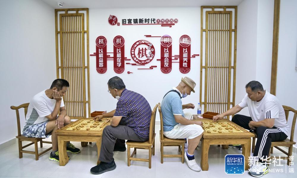 ↑居民在北京市大兴区旧宫镇的新时代文明实践所文化活动室下棋(8月3日摄)。新华社记者 李欣 摄