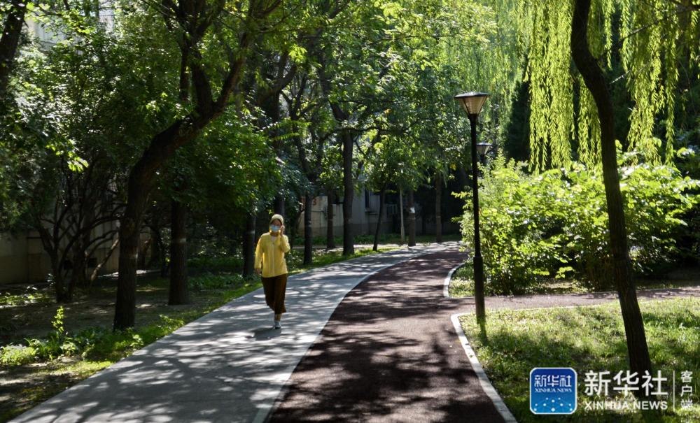 ↑市民在北京市昌平区龙泽社区内的休闲步道锻炼身体(8月10日摄)。新华社记者 李欣 摄