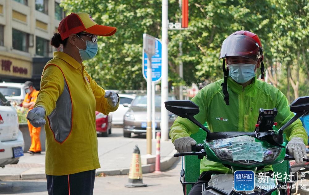 ↑北京市丰台区东高地街道的新时代文明实践中心的志愿者参加疫情防控工作(4月1日摄)。新华社记者 李欣 摄