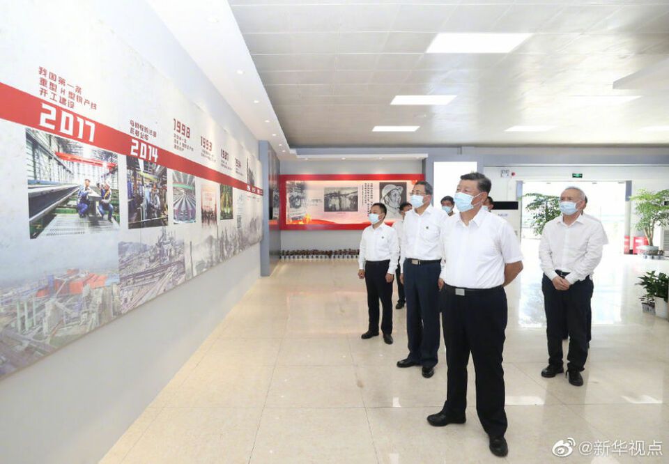 【习近平勉励马钢:在长三角一体化发展中把握机遇顺势而上】19日上午,正在安徽考察调研的习近平总书记走进中国宝武马钢集团优质合金棒材车间,冒着高温察看生产运行情况,并同劳动模范、工人代表亲切交流。习近平指出,在抗击新冠肺炎疫情过程中,马钢较早复工复产,实现了产量、营销收入同比双升,展现了国有经济的强大韧性。他勉励马钢在长三角一体化发展中把握机遇、顺势而上,特别是要把自身改革发展同长三角一体化发展有机结合衔接,力争在长三角一体化发展中不断发展壮大自己,也为长三角一体化发展作出自己的贡献。(文字记者:张晓松 摄影记者:鞠鹏 王晔 燕雁)