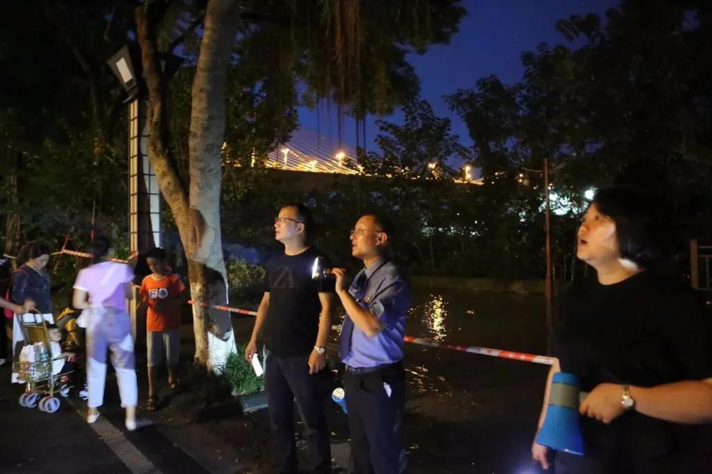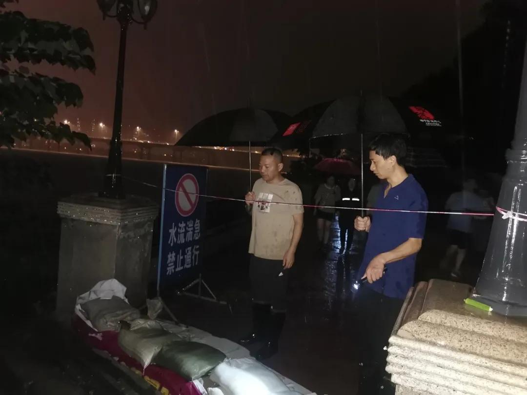 20点30分许,长江洪水漫入滨江路,值勤检察干警手持电筒、喇叭,耐心细致地劝导和协助群众转移、疏散,密切观察水位上涨情况,协助相关部门设置移动警戒线,保障人民群众生命安全。
