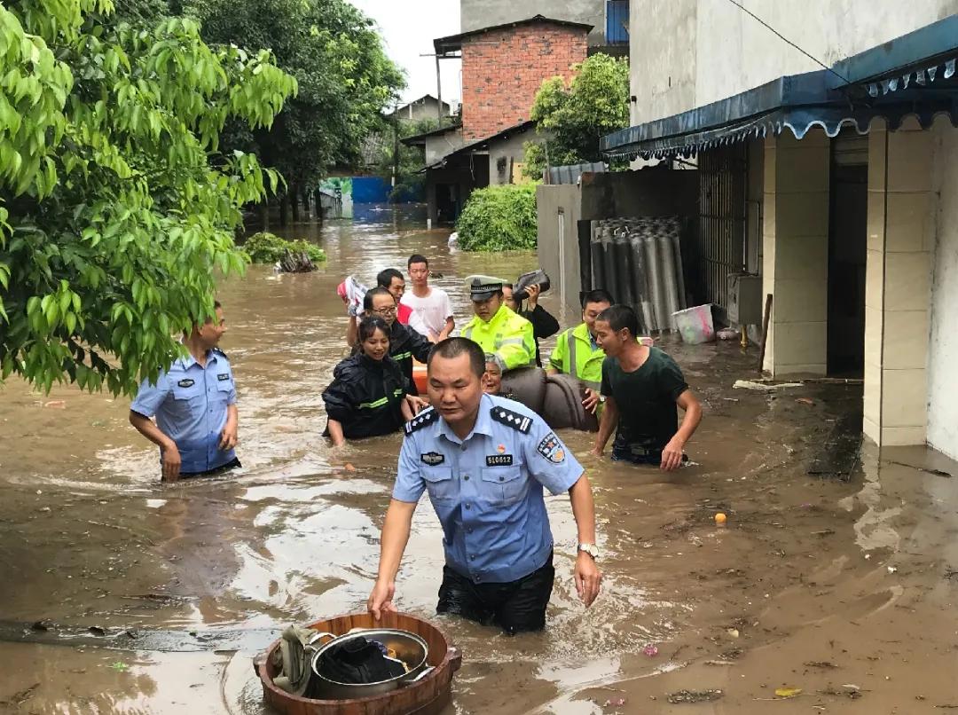 8月18日上午,幸福村居民因暴雨涨水被困家中,五通桥区检察院干警成功救出8名被困老人小孩。