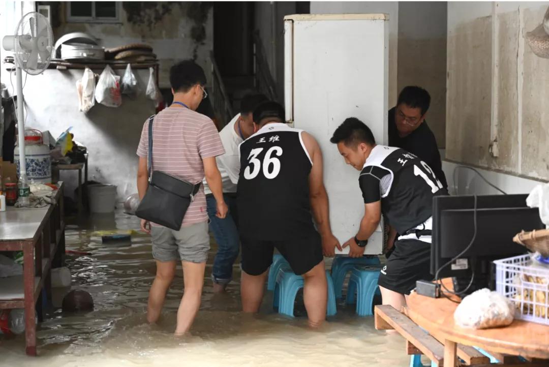 检察干警积极参与一线抗洪、帮助转移安置受灾群众、搬运救灾物资。