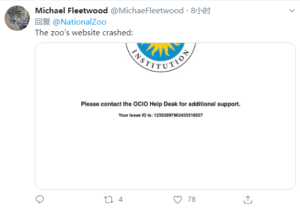 △有网友在社交媒体上发出史密森尼国家动物园网站崩溃截图