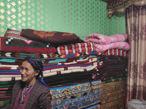 住在宽敞舒适的新家,白玛拉珍打心眼里高兴。二楼的一个小房间还没来得及装修,白玛拉珍告诉我们,装好之后打算给外孙子和外孙女两个孩子住。说这话的时候,她满眼笑意。