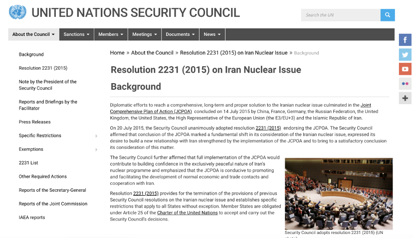 △联合国安理会第2231号决议内容截图 图片来源:联合国官网