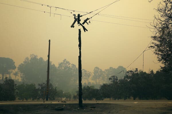 △被山火烧毁的供电线路(图片来源:《纽约时报》)