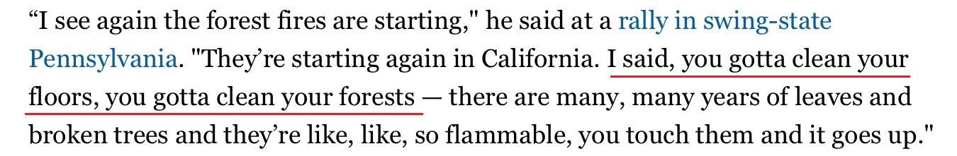 △特朗普:必须要打扫林地(图片来源:美国“政客”网)