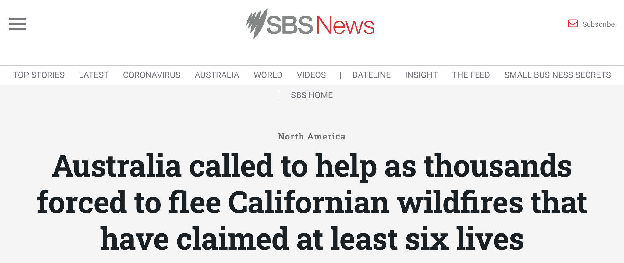 △澳大利亚SBS电视台:加州大火造成至少6人死亡、数千人被迫撤离,已向澳大利亚申请求助