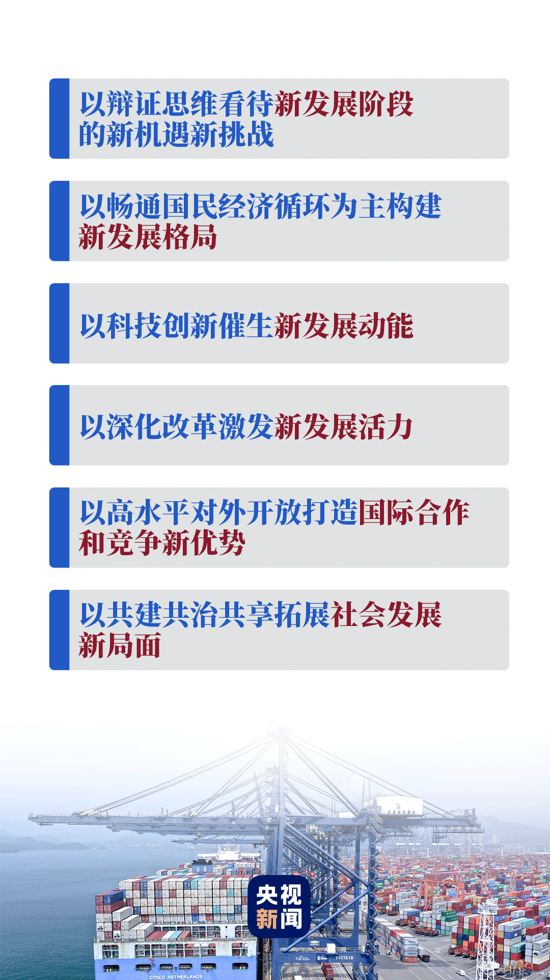 在经济社会领域专家座谈会上,习近平从党和国家事业发展的战略全局出发,从新发展阶段、新发展格局、新发展动能、新发展活力、国际合作和竞争新优势、社会发展新局面等方面提出要求。这六点要求为正确认识和把握中长期经济社会发展重大问题指明了方向,是“十四五”规划编制和未来经济社会发展的重要遵循。