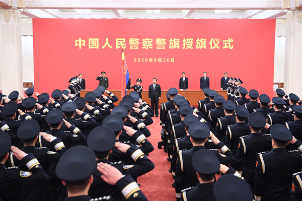 中国人民警察警旗授旗仪式8月26日在人民大会堂隆重举行。在授旗仪式上,习近平总书记分别向公安部部长、总警监赵克志和国家安全部部长、总警监陈文清授旗。