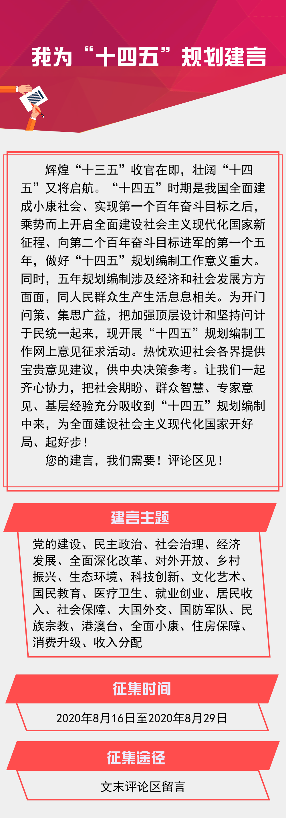 (原标题:“十四五”规划编制工作开展网上意见征求,欢迎建言)