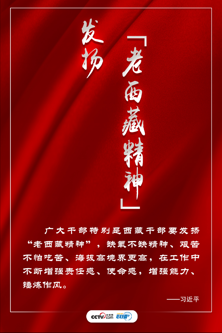联播+“面对新形势新任务,必须全面贯彻新时代党的治藏方略,坚持统筹推进‘五位一体’总体布局、协调推进‘四个全面’战略布局,坚持稳中求进工作总基调,铸牢中华民族共同体意识,提升发展质量,保障和改善民生,推进生态文明建设,加强党的组织和政权建设,确保国家安全和长治久安,确保人民生活水平不断提高,确保生态环境良好,确保边防巩固和边境安全,努力建设团结富裕文明和谐美丽的社会主义现代化新西藏。”