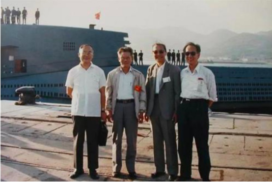 1988年,在我国核潜艇胜利完成水下发射运载火箭后,中国第一代核潜艇几位总设计师合影。赵仁恺(左一)、彭士禄(左二)、黄旭华(右一)、黄纬禄(右二)。资料图。