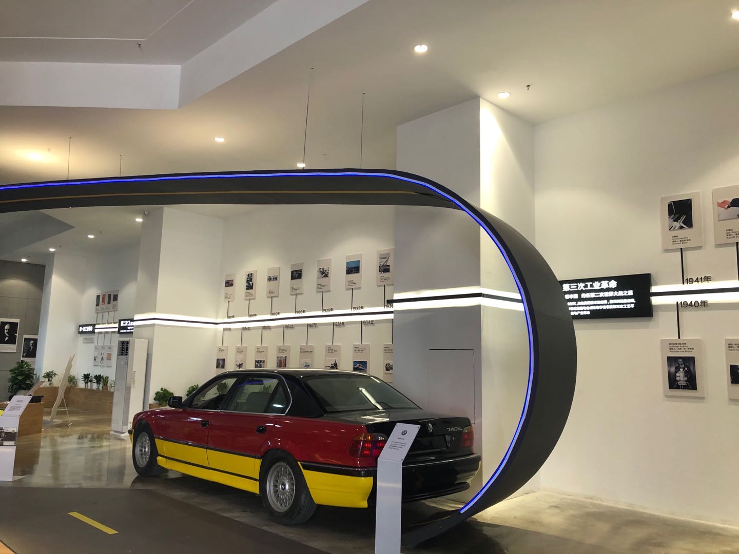 究竟是怎样的体验呢?比如说在德国国家馆,一辆于2001年停产的宝马740跃然于眼前,怀旧的车型,复古的红黄拼色,在这个区域,你可以从汽车文化看起,再到纵览整个德国的工业革命。