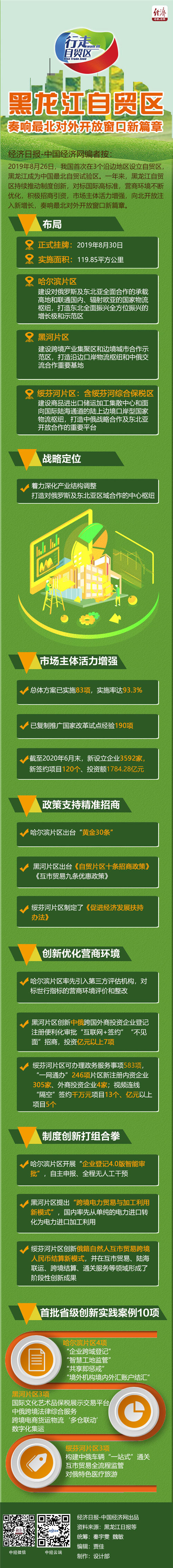经济日报-中国经济网编者按:2019年8月26日,我国首次在3个沿边地区设立自贸区,黑龙江成为中国最北自贸试验区。一年来,黑龙江自贸区持续推动制度创新,对标国际高标准,营商环境不断优化,积极招商引资,市场主体活力增强,向北开放注入新增长,奏响最北对外开放窗口新篇章。