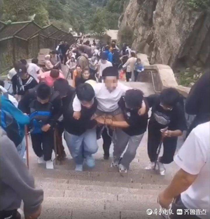 这件事情发生在8月26日,五名来自山东枣庄滕州的高中生,在攀登泰山途中遇到了一位背着孩子的母亲,经过询问得知孩子在爬山过程中突发头晕胸闷、恶心脱力,这位母亲背着一路上已用尽了全部力气。得知情况后,五位少年互相看了一眼,没有任何犹豫,决定将孩子抬到南天门红十字救助站。要知道,当时他们正处在泰山登山盘路中最险要的一段,俗称“紧十八”,倾角70至80度,在不足1公里的距离内升高400米,攀登起来十分费力,五个男生就用“抬轿子”的方式将孩子送到了救助点。