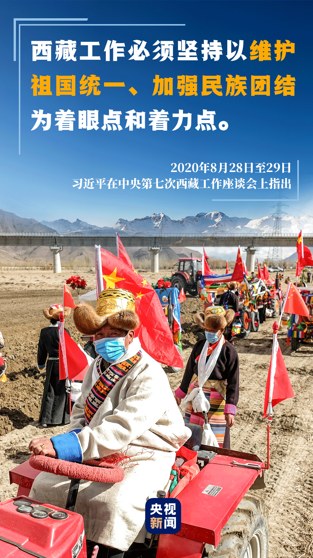 五年前,在中央第六次西藏工作座谈会上,习近平指出,西藏工作的着眼点和着力点必须放到维护祖国统一、加强民族团结上来。这次座谈会,总书记再次强调了这一要求。