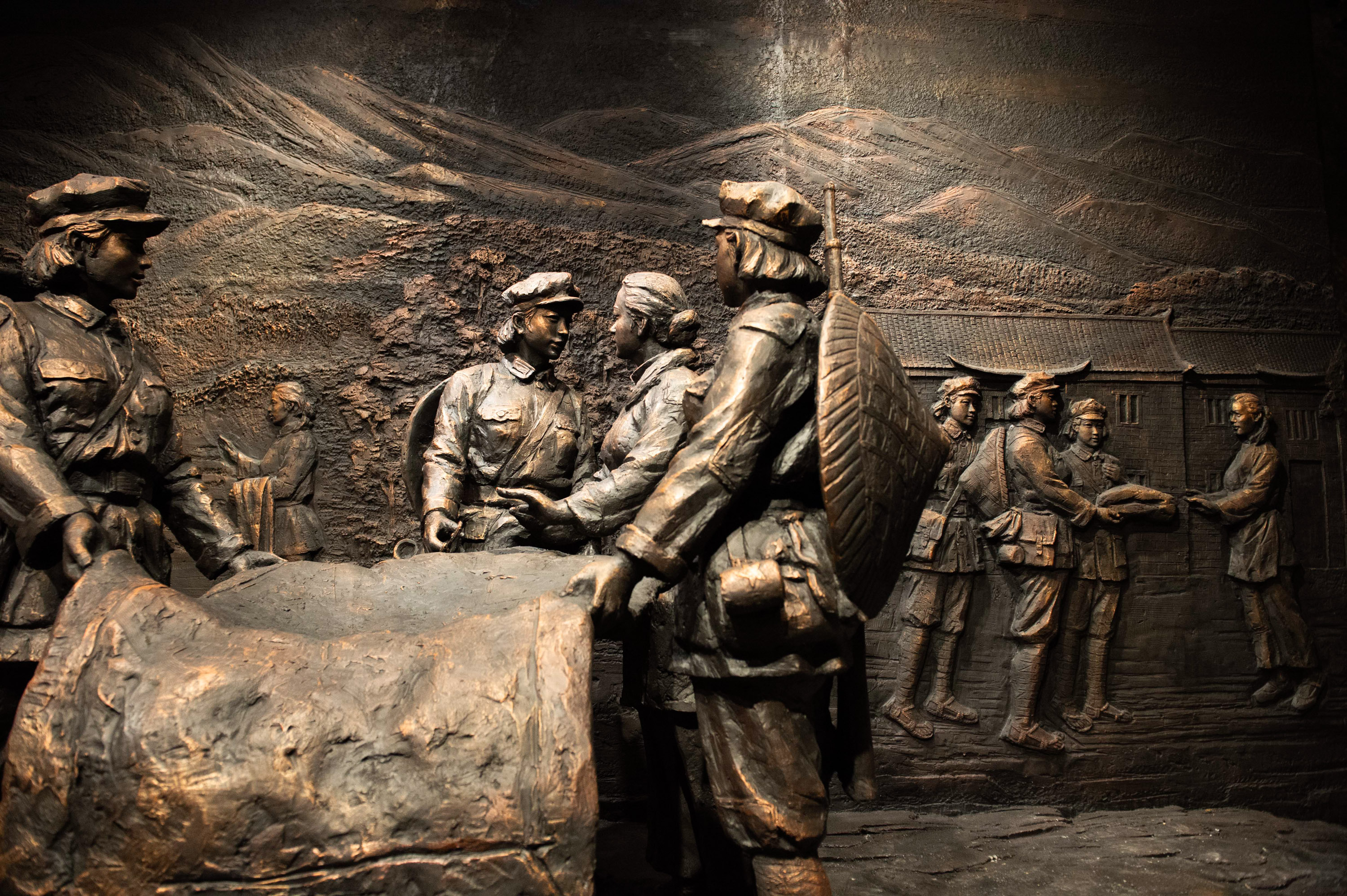 湖南省汝城县沙洲村广场上的“半条被子”雕塑。