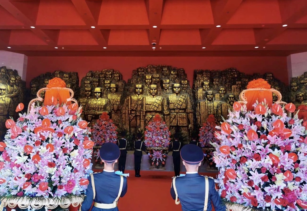 △礼兵将花篮抬入纪念馆序厅。(总台央视记者黄京辉拍摄)