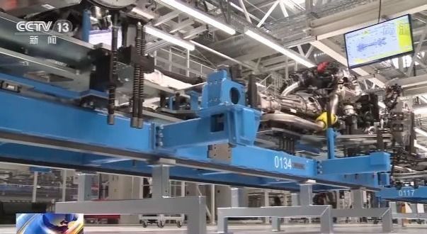 总台记者 余鹏:数字化是这个工厂最重要的特征之一。车辆、机器人、生产流程都可以通过网络实现无缝连接。一条生产线就可以满足所有车型的生产需求。在提高产量和质量的同时,可以降低成本。