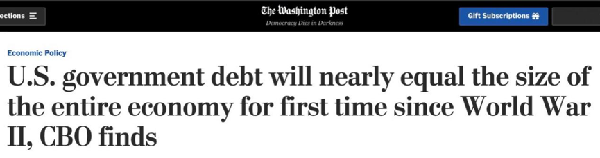 △《华盛顿邮报》:二战以来,美国债务将首次超过其经济体量