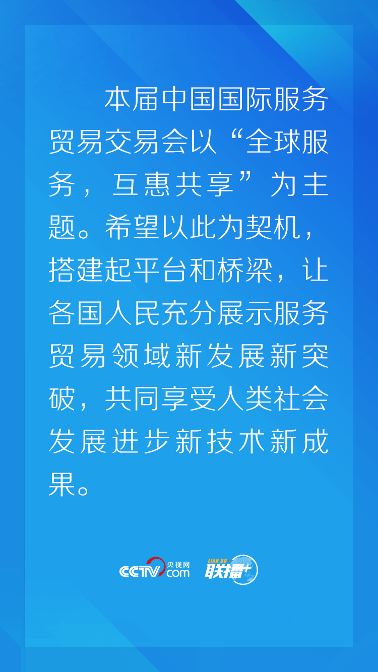 致辞中,习近平主席分析了当前世界经济形势和发展趋势,阐明此次办会目的,并提出三点倡议、六大切实行动,为促进全球服务贸易发展繁荣、推动世界经济尽快复苏提供了中国方案。央视网《联播+》特梳理,与您一起齐心协力、携手前行,以坚定的步伐走出人类历史上这段艰难时期,共同迎接世界更加美好的未来!