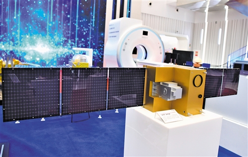 近日在安徽创新馆拍摄的“墨子号”量子科学实验卫星模型。新华社记者 刘军喜摄