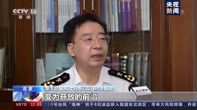 海关总署统计分析司司长 李魁文:随着共建“一带一路”倡议的深入推进,中西部地区由内陆的腹地变成开放的前沿。今年前8个月,我国对“一带一路”沿线国家进出口继续保持增长,有力带动了中西部地区外贸发展,外贸区域布局更加优化。